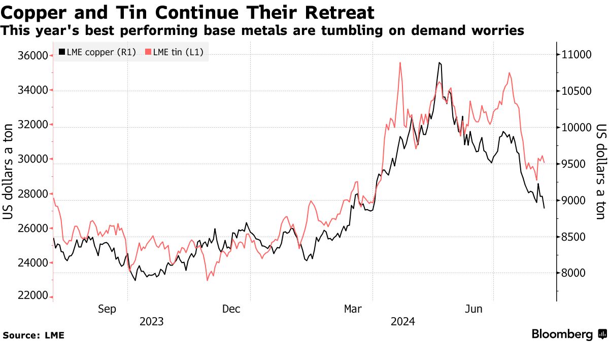近期,金属因对中国需求疲软的担忧而被拖低,铜价已连续第四周下跌。对美国经济硬着陆的快速增长的担忧增加了逆风,交易员质疑工业金属市场是否正处于全球需求下滑的边缘。