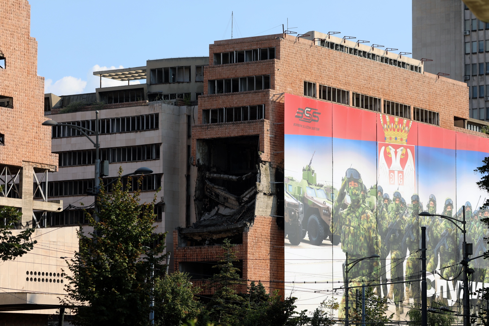 在北方约300英里(480公里)处,两座被轰炸的塔楼俯瞰着贝尔格莱德的一条主要大道。曾是前南斯拉夫国防部的总部,它们在1999年遭到北约导弹袭击,残骸如今成为塞尔维亚首都观光游的一部分。