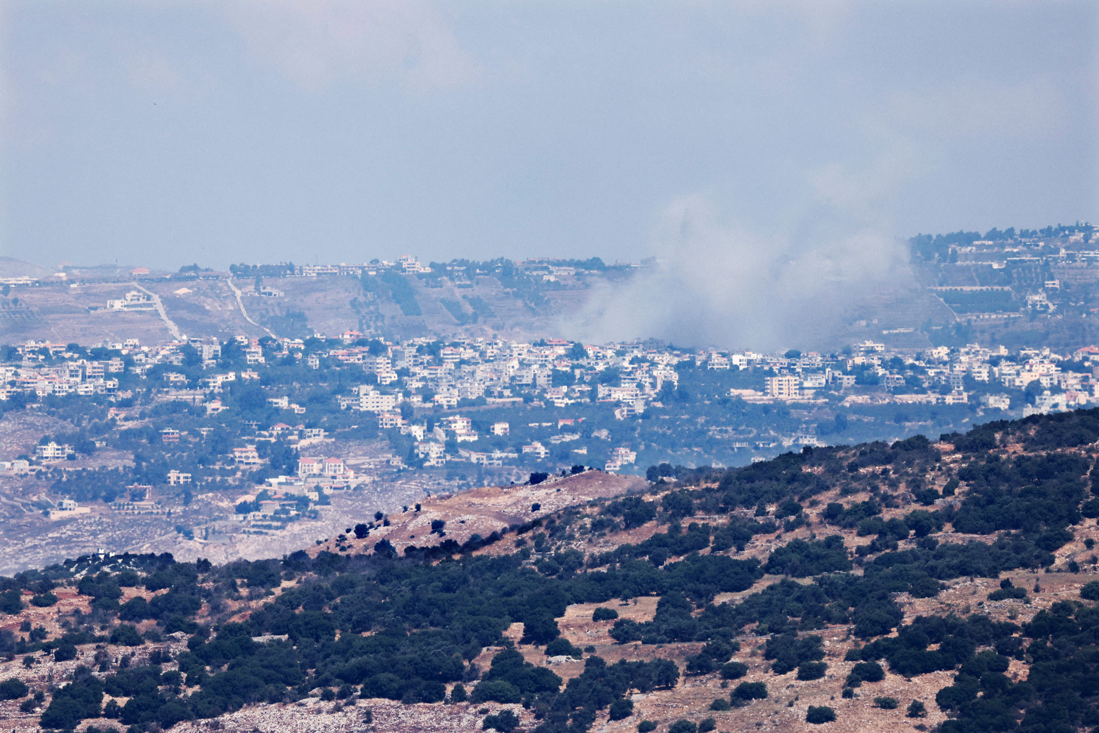 烟雾在8月6日黎巴嫩-以色列边境附近的基亚姆村上升。