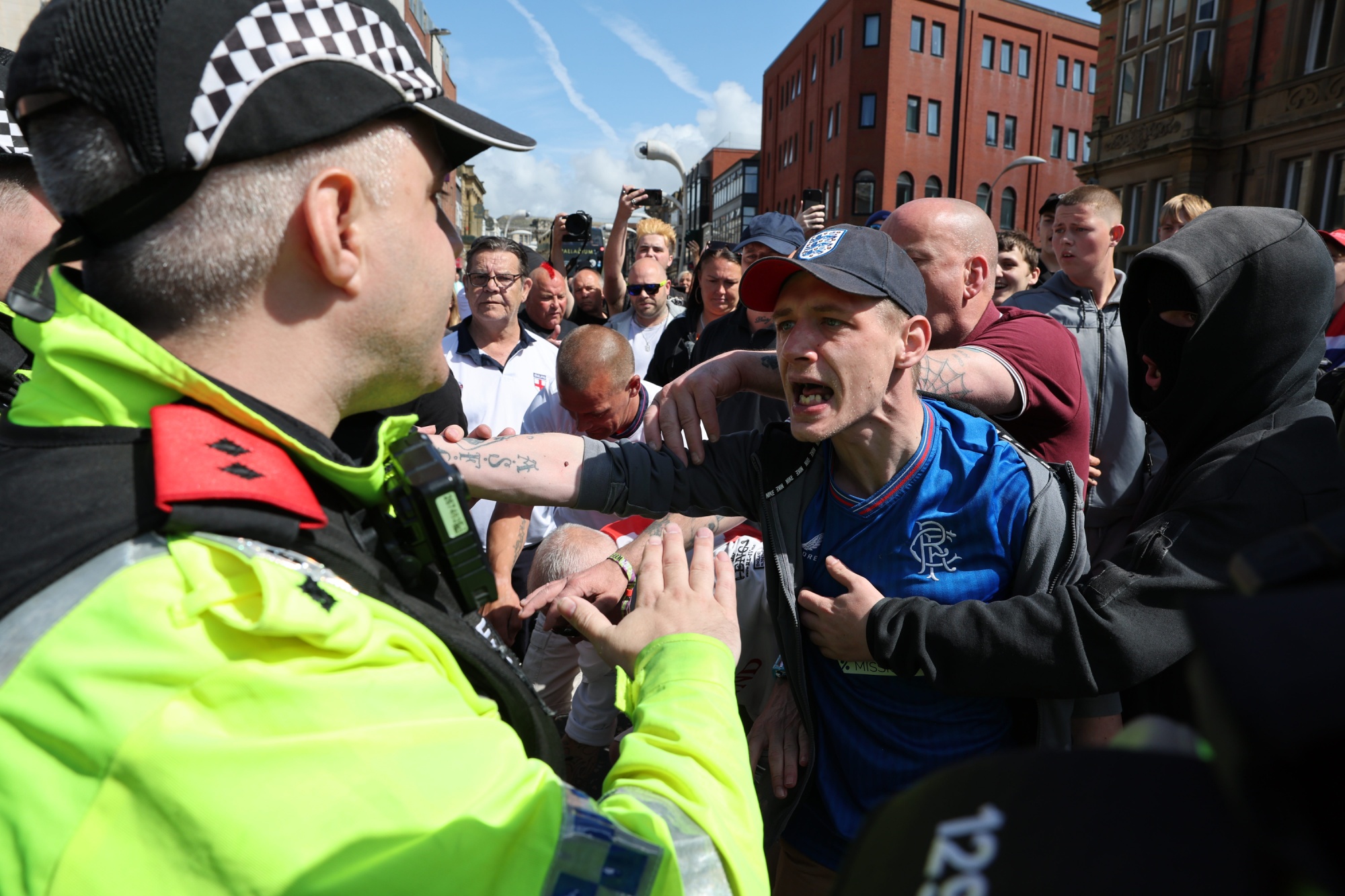 人们在布莱克浦抗议刺杀事件