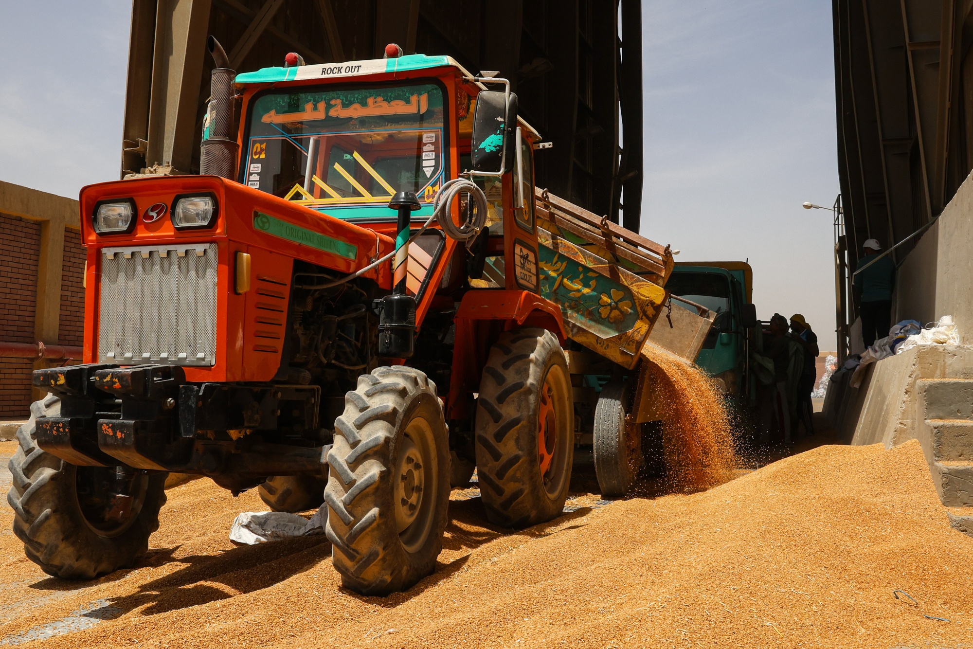 一位农民将小麦送到埃及法尤姆省塔梅亚的政府运营的磨坊的储存筒仓。