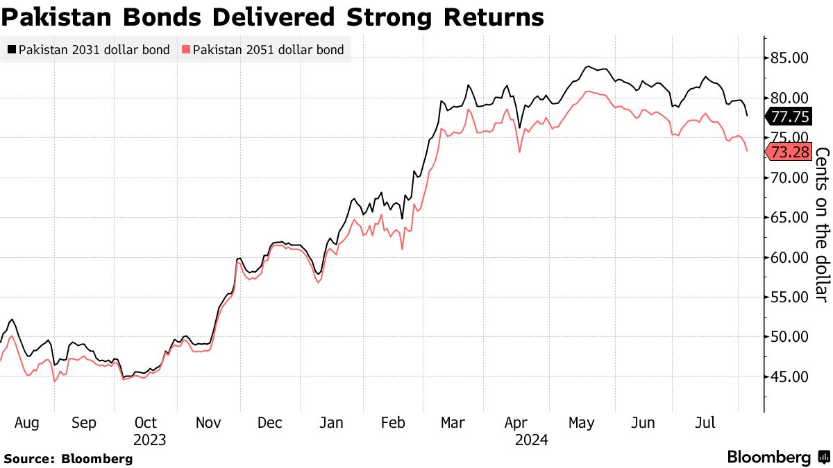 巴基斯坦的美元债券今年的回报率约为30%,是亚洲最高的。这些回报大部分是在国际货币基金组织上个月首次 批准新的三年贷款计划之前获得的。