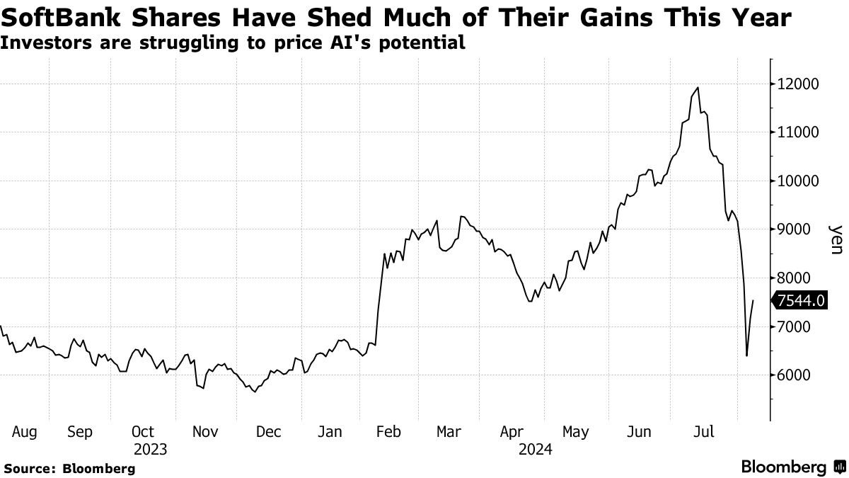 这笔支出将是在创始人孙正义表示他正在动员资源进行大规模投资于人工智能之际。同时,这也与市场的修正相吻合,因为投资者重新评估人工智能对收益的潜在影响。软银的股票在周一暴跌,这是自1998年以来的最大跌幅。周二和周三,股价回升了大部分损失,但软银的市值仍比7月份创下的历史高点下降了超过400亿美元。