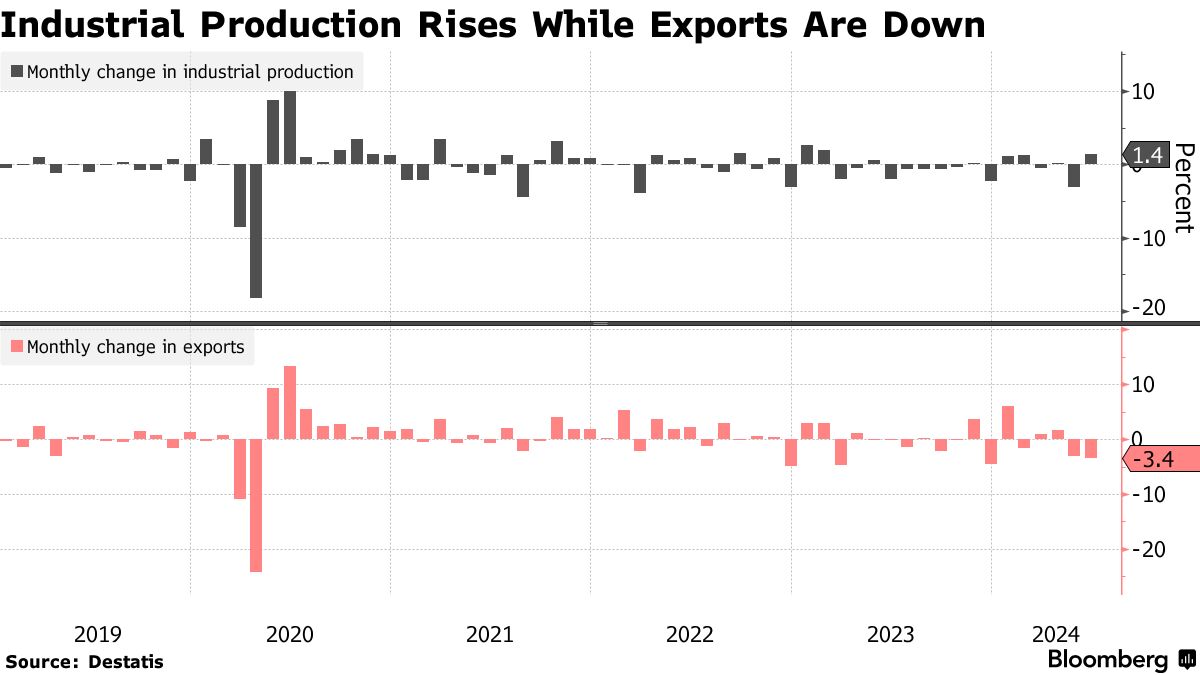 产出较五月增加了1.4%,超过了彭博社分析师调查中1%的中位数预期。数据显示,汽车和电气设备推动了这一增长。
