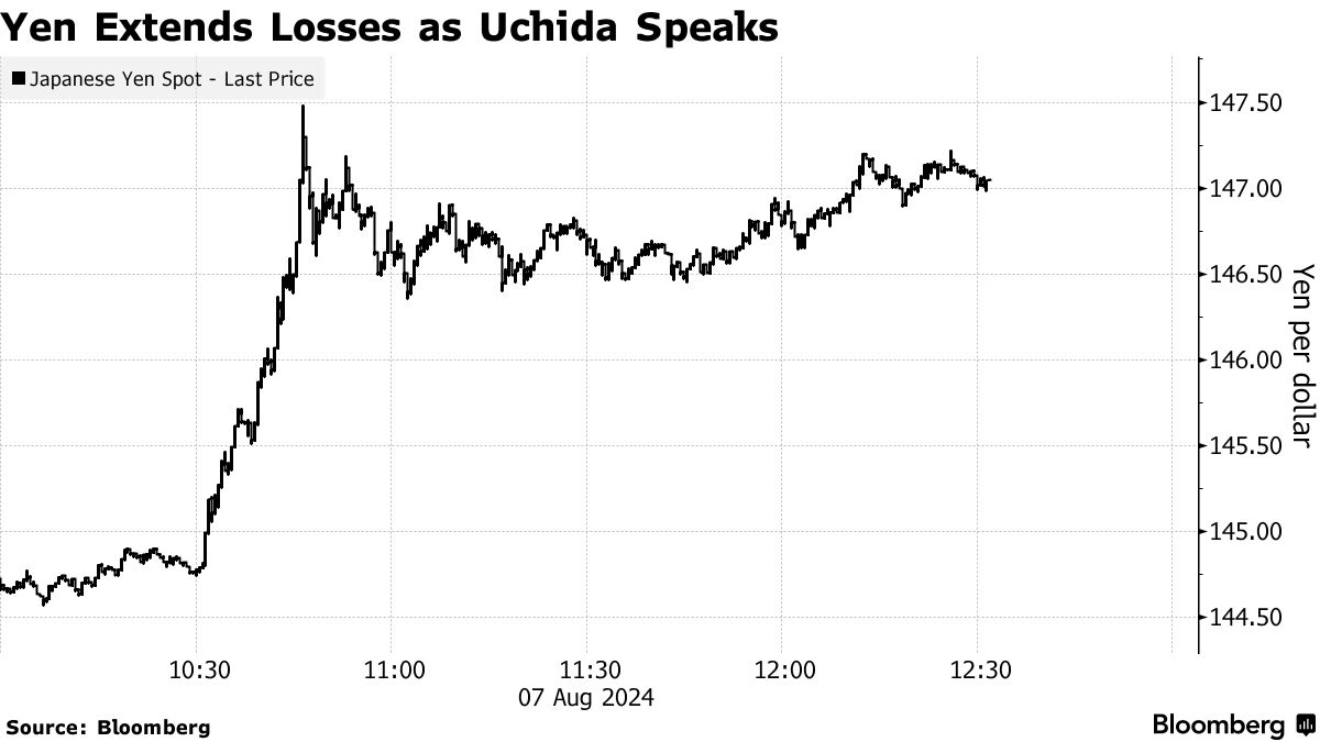 * 近期走势 “极其波动”,央行需要 维持宽松政策,内田在市场崩溃后的首次公开发言中表示。