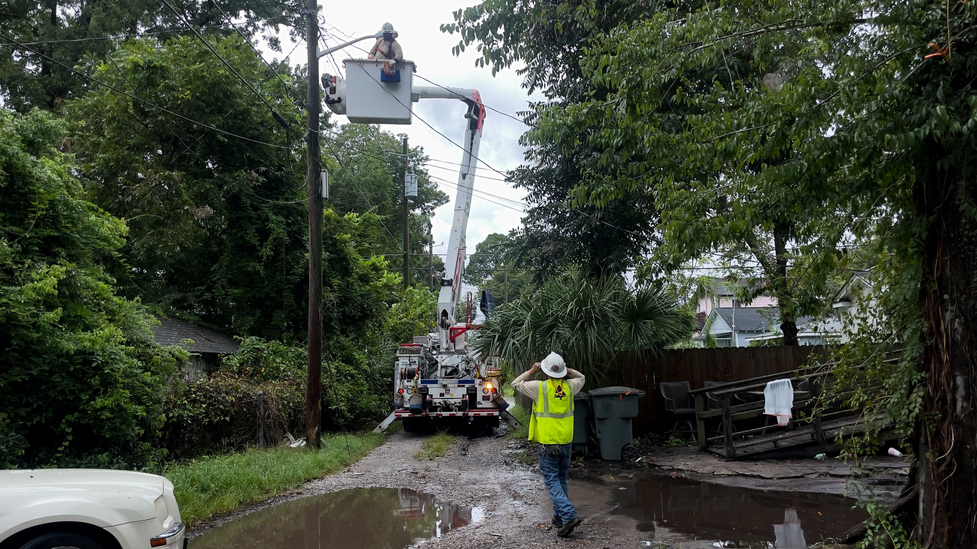 乔治亚州萨凡纳的电力线路维修队,拍摄于8月6日。摄影师:梅根·瓦尔纳/美联社北美飓风和热带风暴需要更大的天气系统来推动它们。在德比登陆后的几天里,有两个系统阻挡了它的去路,使其能够释放更长时间的强降雨。