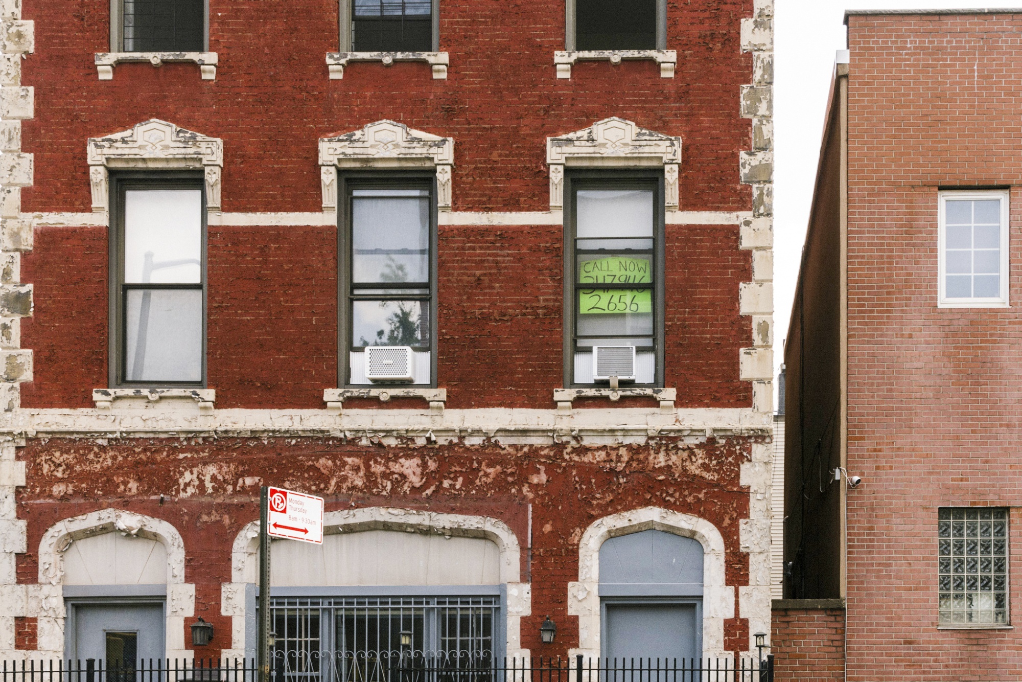 布鲁克林Greenpoint一间公寓窗户上的租赁广告。摄影师:Laurel Golio/Bloomberg### ‘没有戏剧’