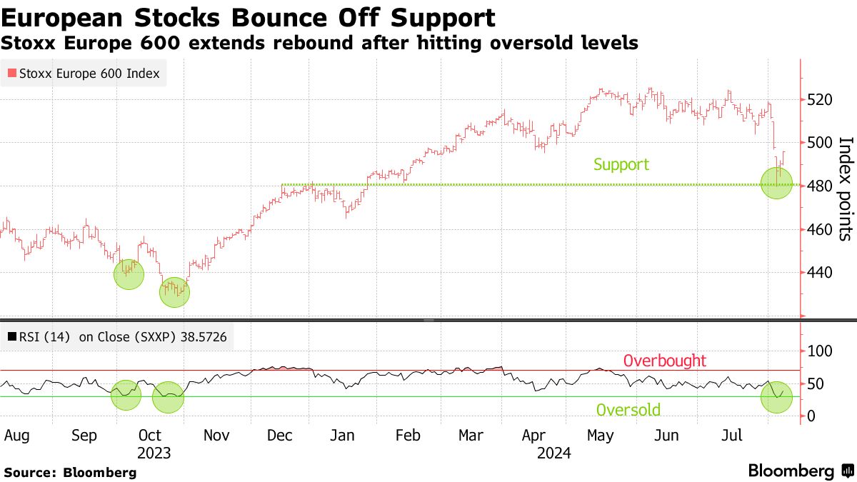 欧洲股市上涨,朝着自十一月以来最大的涨幅迈进,因为全球反弹在周一的暴跌后加速。