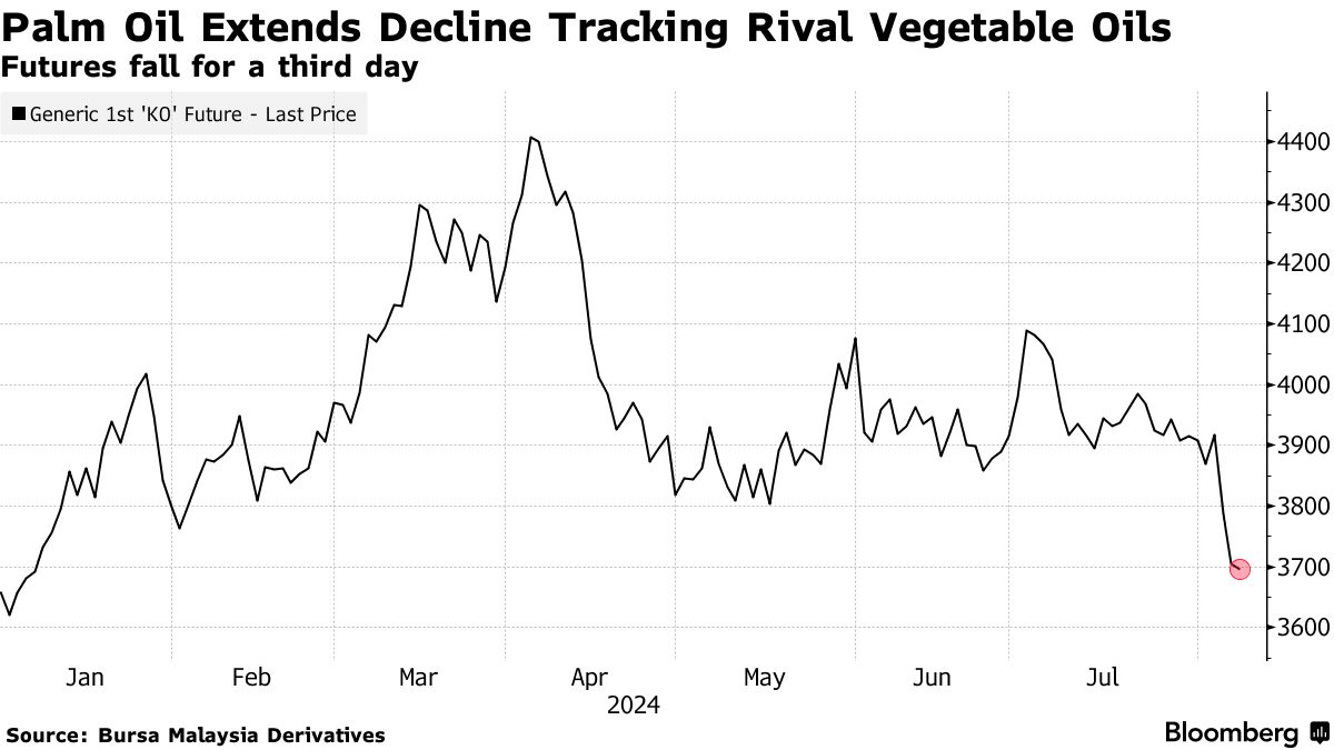 摄影师:安德鲁·哈雷尔/彭博社由于中国市场植物油疲软,棕榈油连续第三天下跌,芝加哥大豆油期货也呈下行趋势,交易员们在等待马来西亚生产的官方数据。