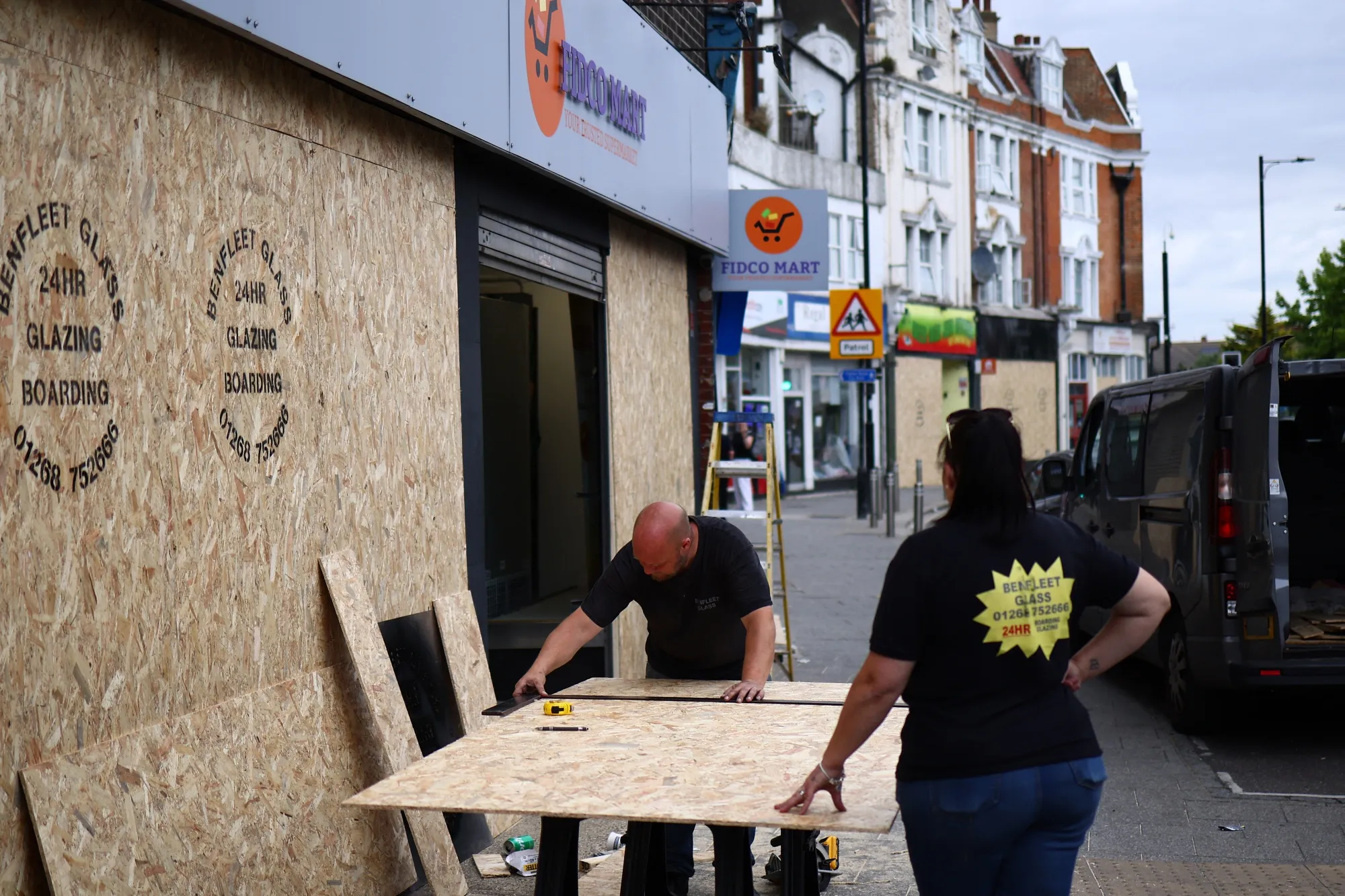 居民们准备木板以保护商店门面,以应对8月7日在英格兰韦斯特克利夫由极右活动人士召集的反移民抗议。摄影师:法新社/盖蒂图片社在事件中,政府和警察的最坏担忧并没有实现。但问题是,暴力是否会因此平息,还是说正是成千上万的反抗议者的存在让极右煽动者退却。周六足球赛季的开始引发了人们对大群体在全国范围内活动的担忧——尽管也有人认为,分散注意力可能有助于让人们远离街头。