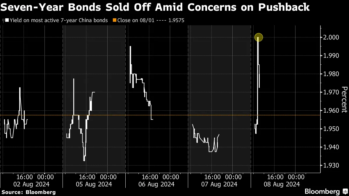 周四国有银行的抛售可能让一些交易员措手不及,他们曾认为七年期债券是一个 甜蜜点,因为其收益率吸引且官方干预的可能性较低。