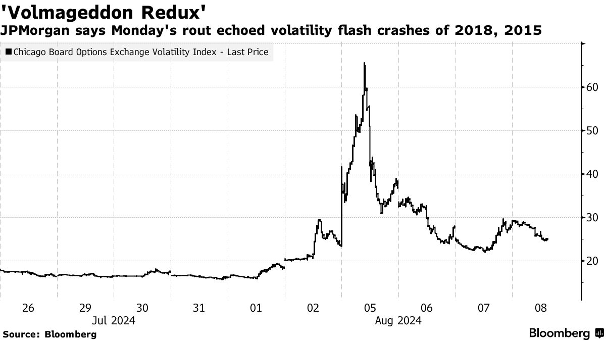 根据Lakos-Bujas的说法,周一的波动是“波动末日的重现”,他表示,Cboe波动率指数(VIX)在剧烈抛售中飙升至自2020年以来未见的水平,类似于2018年和2015年市场动荡期间发生的闪电崩盘。科技巨头和人工智能宠儿的动量交易回撤、8月和9月历史上是股市最弱的月份的季节性疲软,以及美国选举的不确定性也对股票的近期挣扎产生了影响。