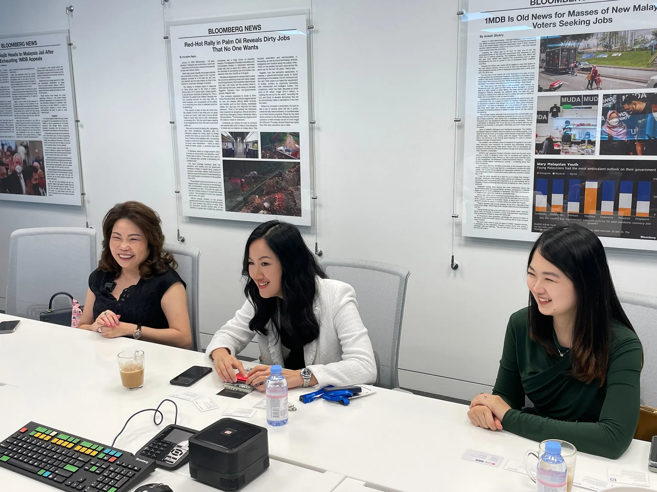 左起:艾钦·谭、许仁·陈和罗·先·张摄影师:艾因斯利·阿索坎/彭博社艾钦·谭,华侨银行马来西亚投资银行的负责人,回忆起她在金融行业工作超过三十年前的情景,当时她有时是参与重大交易的唯一女性。
