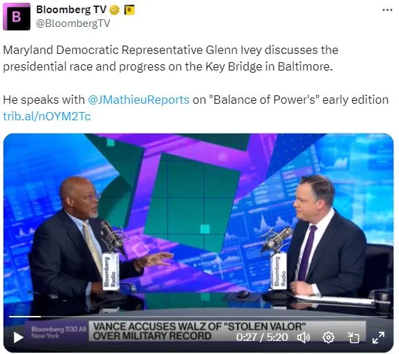 今天在彭博电视台的 权力平衡早间版中,主持人乔·马修采访了民主党代表格伦·艾维,讨论总统竞选和马里兰州的参议院竞赛,以及巴尔的摩更换关键桥的进展。