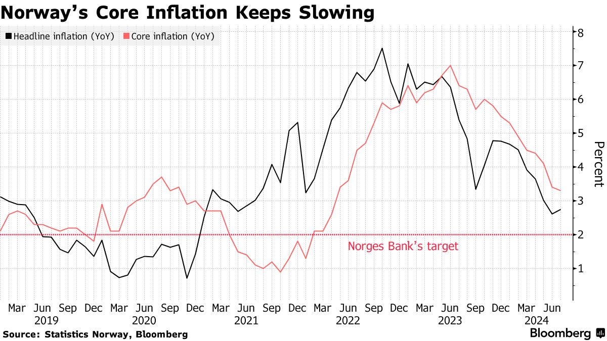 北欧国家也可能引起关注,尤其是挪威。挪威银行预计将在周四将利率维持在4.5%,与6月份采取的更激进的立场一致,当时官员们实际上将货币宽松推迟到2025年。
