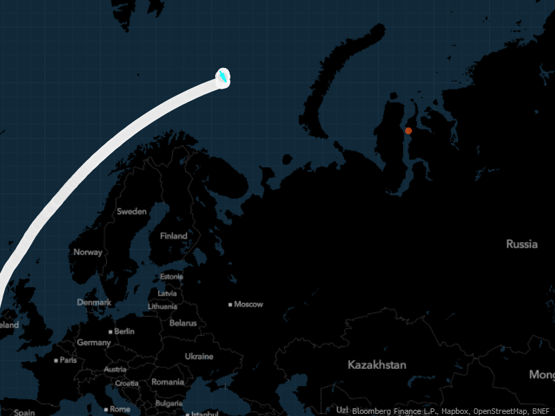 Asya Energy LNG油轮的应答器显示它在巴伦支海(蓝点),而卫星图像显示它在俄罗斯受制裁的北极2号工厂(红点)彭博社卫星图像显示,第二艘液化天然气油轮已在受美国制裁的俄罗斯北部出口终端靠岸。