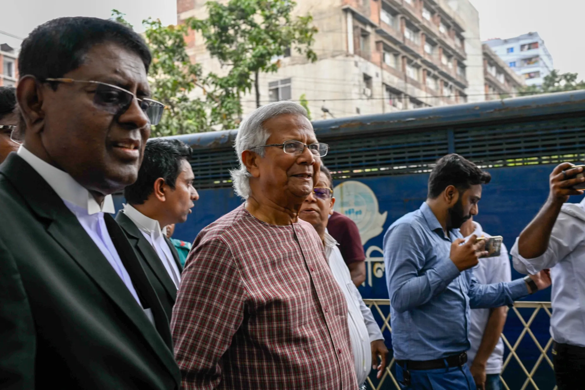 尤努斯在哈西娜政府的手中遭遇法律危险,被指控犯有他否认的罪行,人权律师称这些指控是出于政治动机。他常常被描绘成哈西娜的死敌。尤努斯将哈西娜的政权形容为“残酷的专制”政府,并将她的垮台称为“第二次解放”。