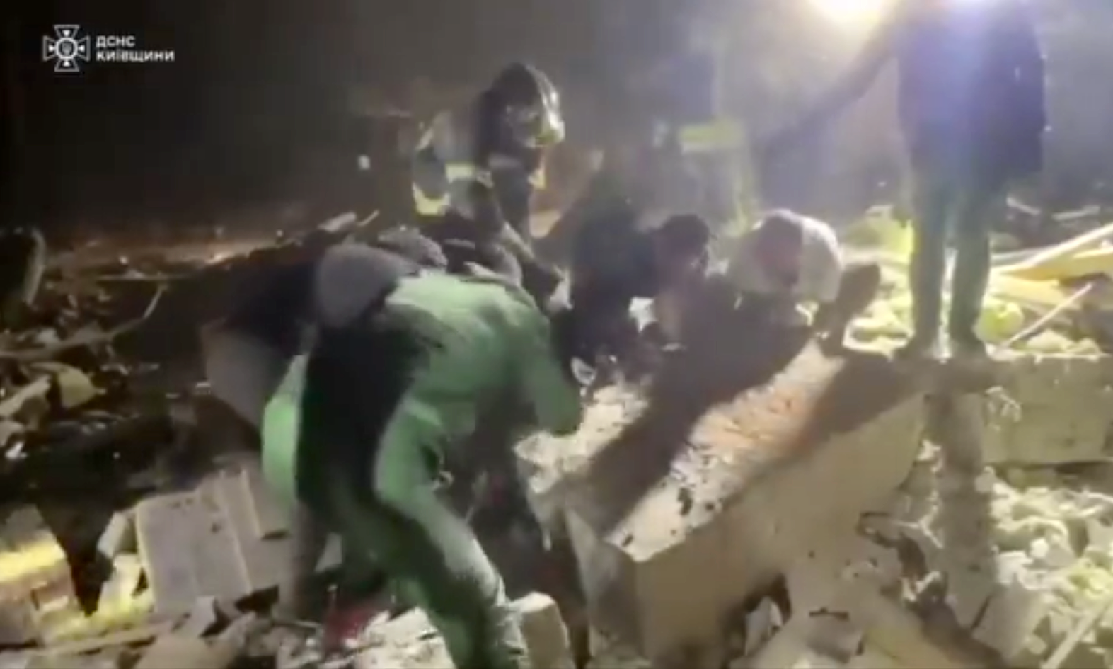 乌克兰救援服务在基辅的导弹袭击后在废墟中挖掘。