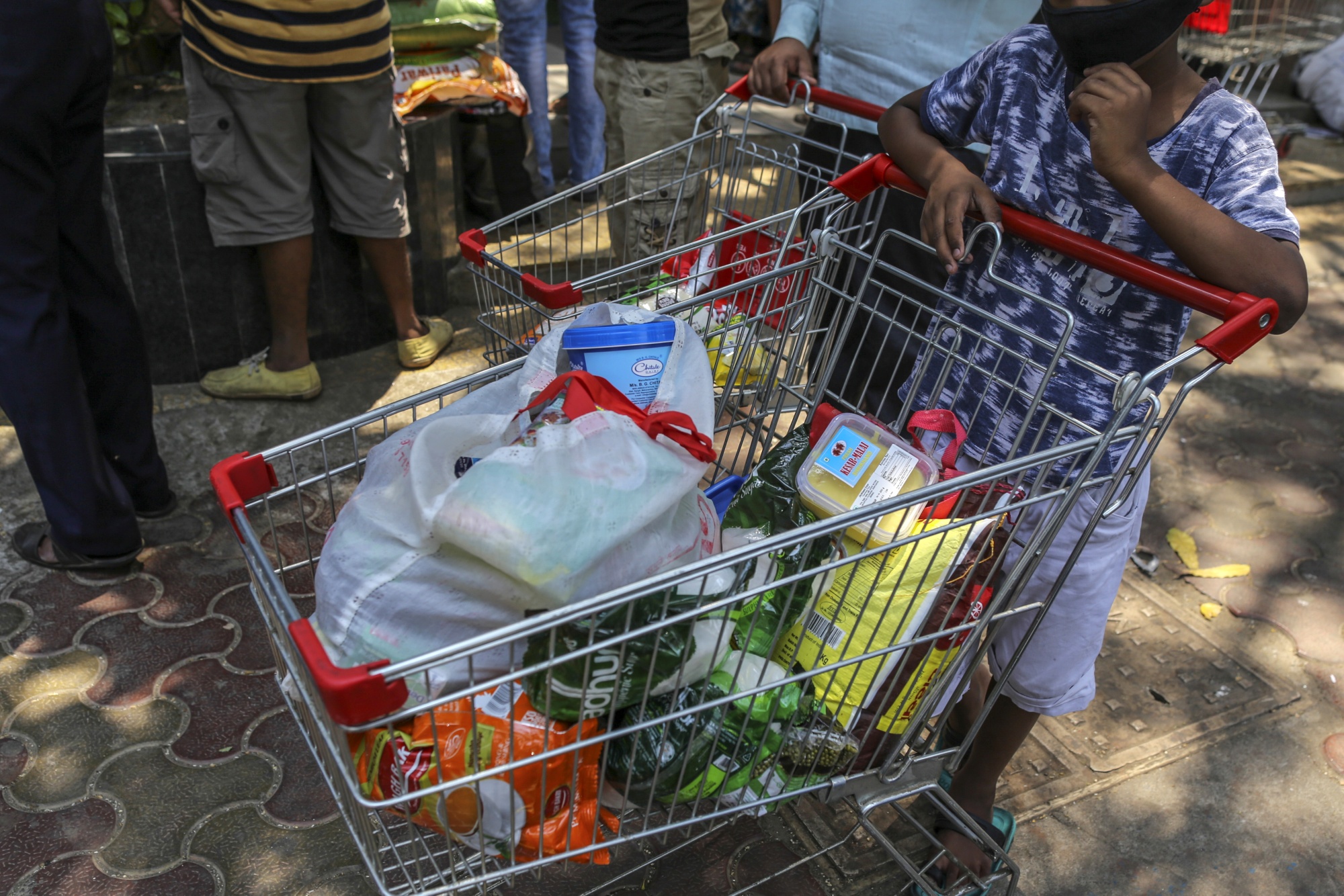 孟买超市的顾客。摄影师:Dhiraj Singh/Bloomberg