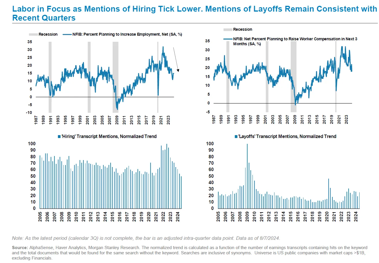 劳动力市场的降温反映在高管对招聘的提及上。由于7月份就业数据不佳,市场困扰被视为巩固了9月份降息的理由。管理者似乎达成了一致: