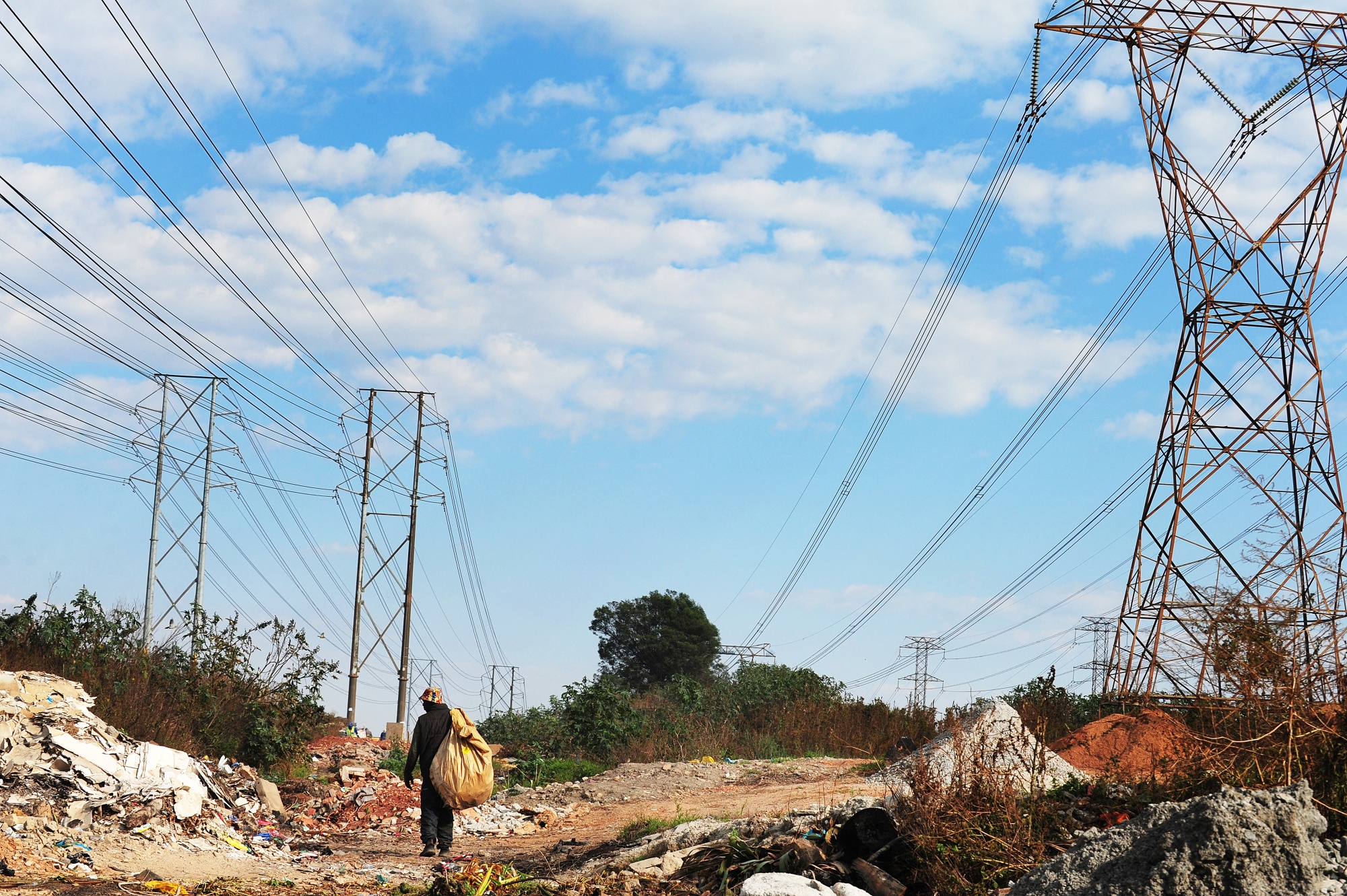 约翰内斯堡一个非正式定居点的垃圾收集员。摄影师:Leon Sadiki/Bloomberg