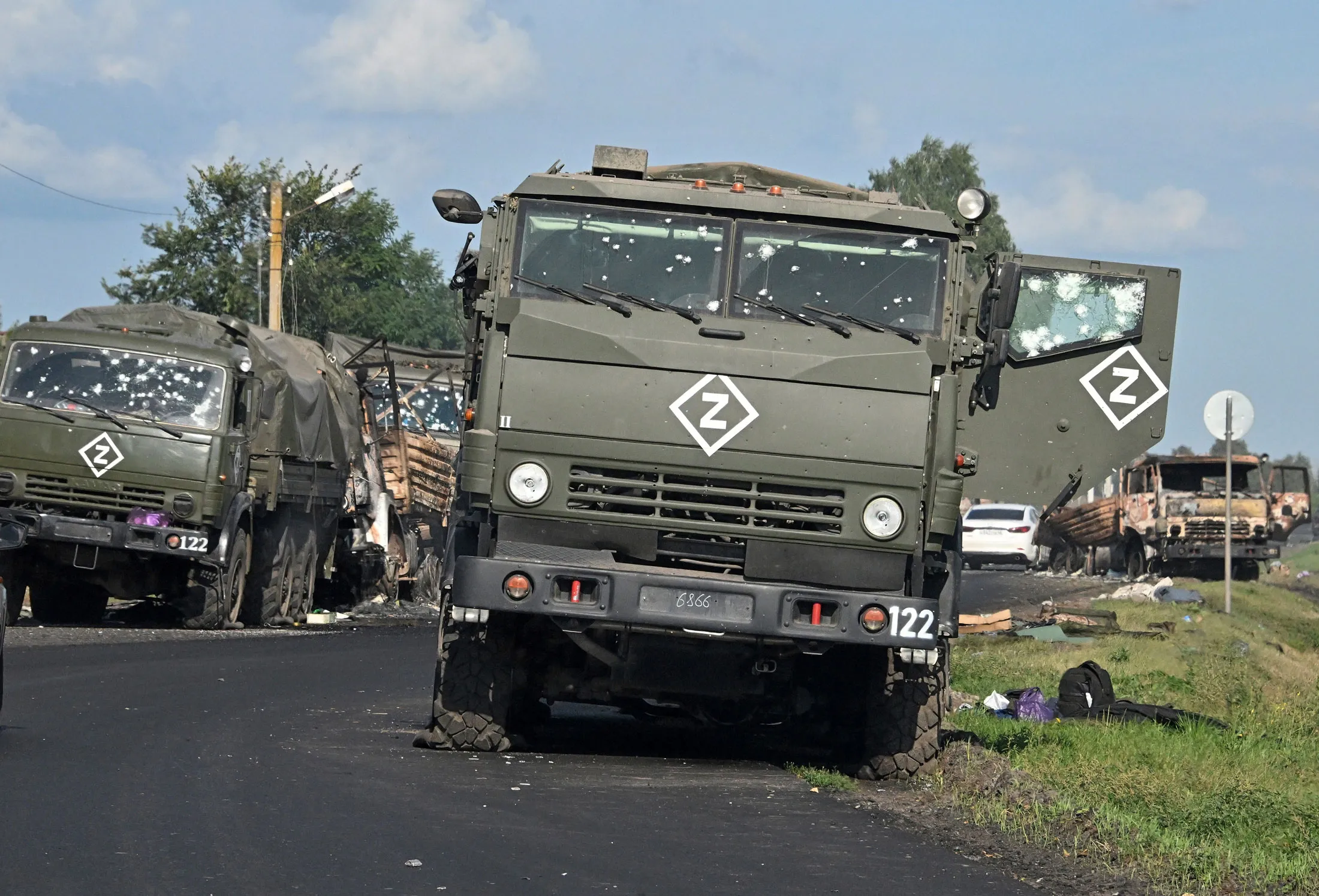 库尔斯克地区公路上受损的俄罗斯军用车辆,经过乌克兰的攻击。摄影师:阿纳托利·兹丹诺夫/Sipa USA/AP照片攻击还涉及破坏活动。乌克兰情报机构在去年一列货运列车通过贝加尔湖东北部的隧道时, 制造了一次爆炸,将其影响扩展到西伯利亚深处。