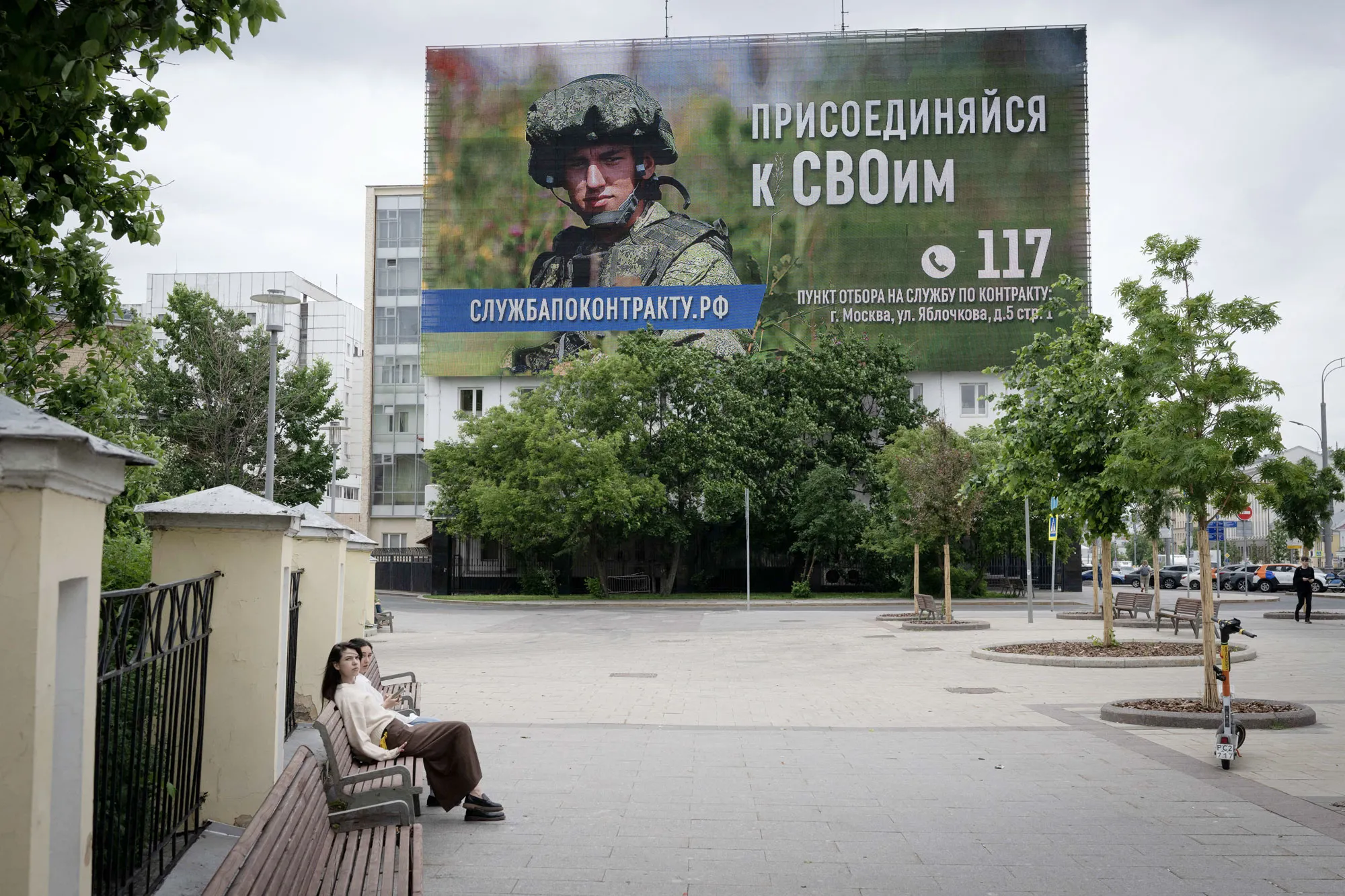 莫斯科的一则合同兵役征兵公告。摄影师:娜塔莉亚·科列斯尼科娃/法新社/盖蒂图片社俄罗斯计划将其武装力量从115万人扩大到150万人。时任国防部长谢尔盖·绍伊古在12月表示,其中有65万人在乌克兰有过作战经验。