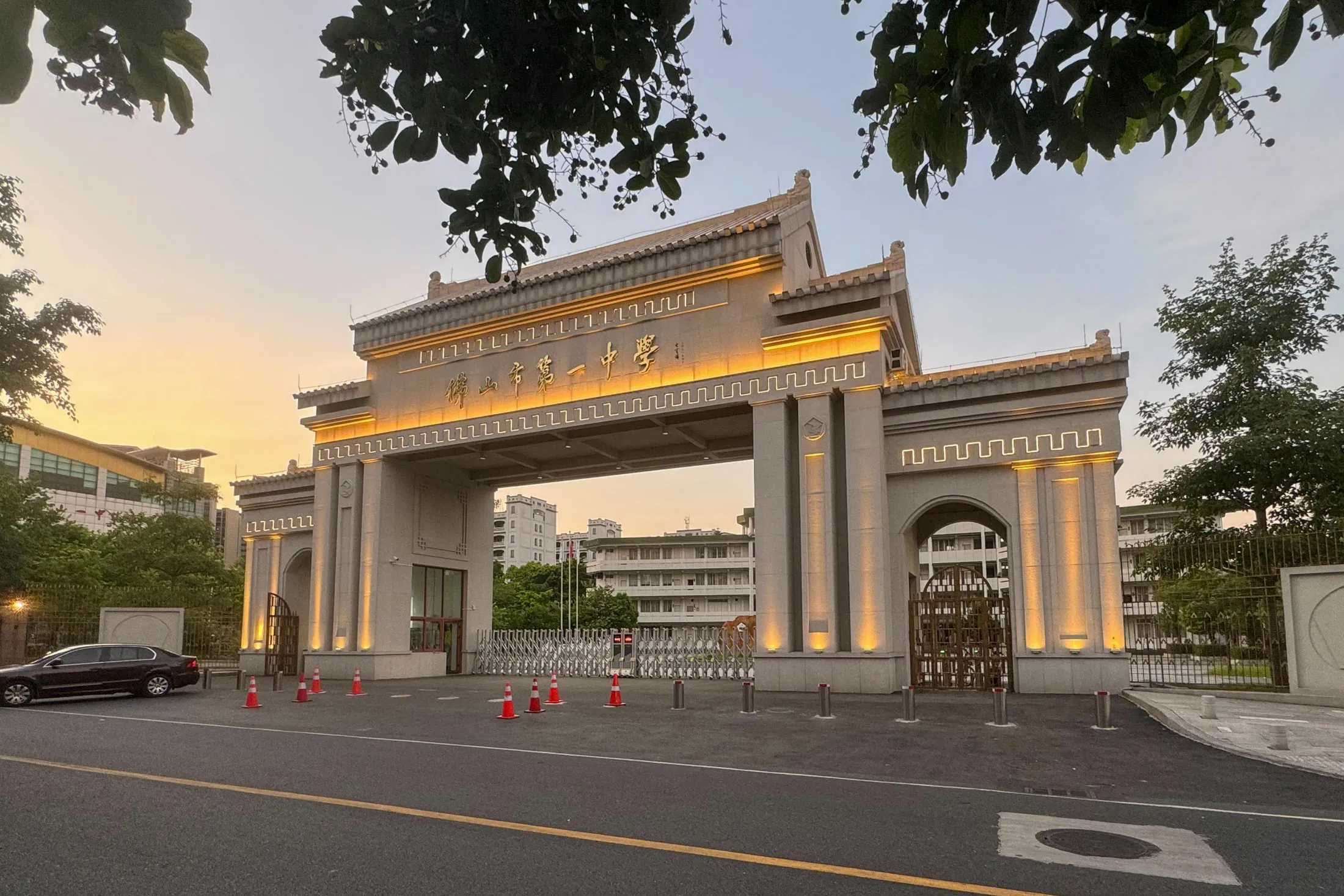 佛山第一中学, 美国副总统候选人蒂姆·沃尔兹几十年前曾在此任教,现在受到人脸识别摄像头和保安的保护。这是 一个象征,显示习近平的更严格控制使外国人更难进入世界第二大经济体。不仅仅是中国在 打压 国际学生。