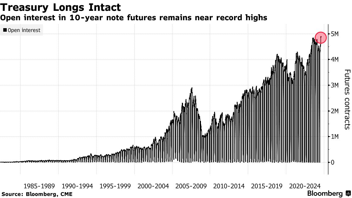 未平仓合约,即期货交易员承担的风险量,在过去几场交易中开始在一些期限上上升,这与 新的多头头寸 一致,之前在国债曲线上经历了一段激进的 平仓 期。同时,在现金市场中,摩根大通的国债客户调查于周二发布,显示客户的净多头头寸达到了自去年12月以来的最高水平。