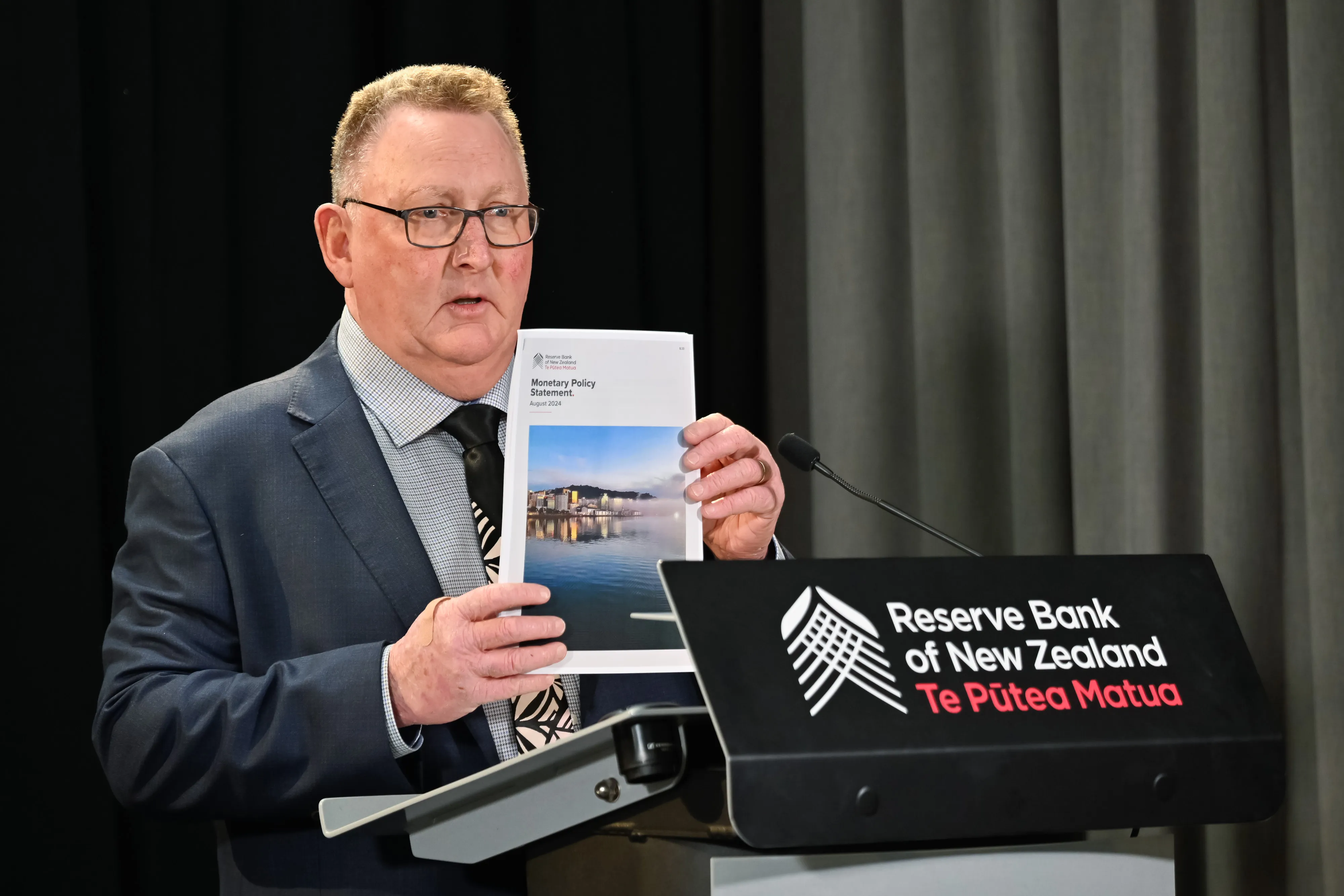 奥尔在8月14日的新闻发布会上手持货币政策声明。摄影师:马克·库特/彭博社新西兰储备银行转向宽松是一个迅速的变化,此前它在5月表示考虑加息,并且不会在2025年下半年之前降低利率。随着经济在不到两年的时间里面临第三次衰退的边缘,失业率上升,银行对持续的国内通胀的担忧正在减轻。