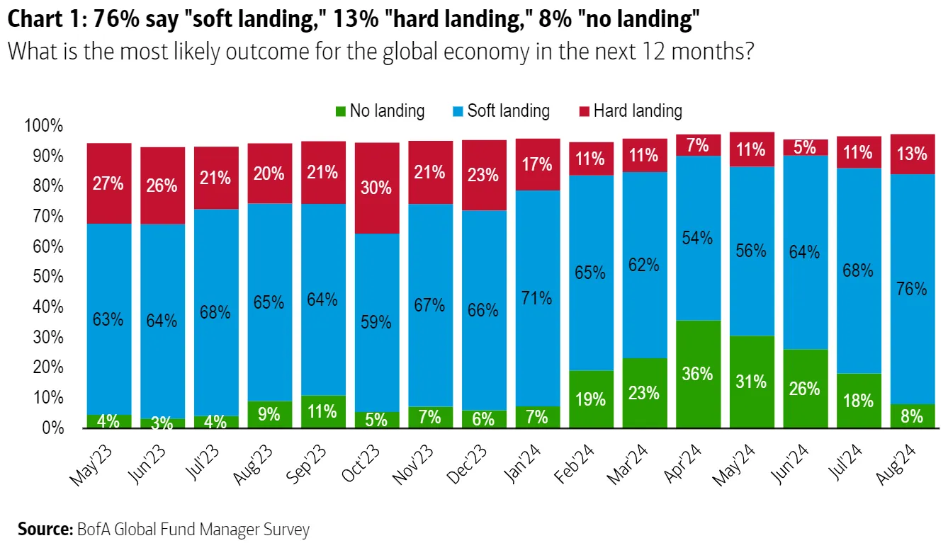 - 在上周的市场动荡中,基金经理对 软着陆 的信心显著上升。真的!