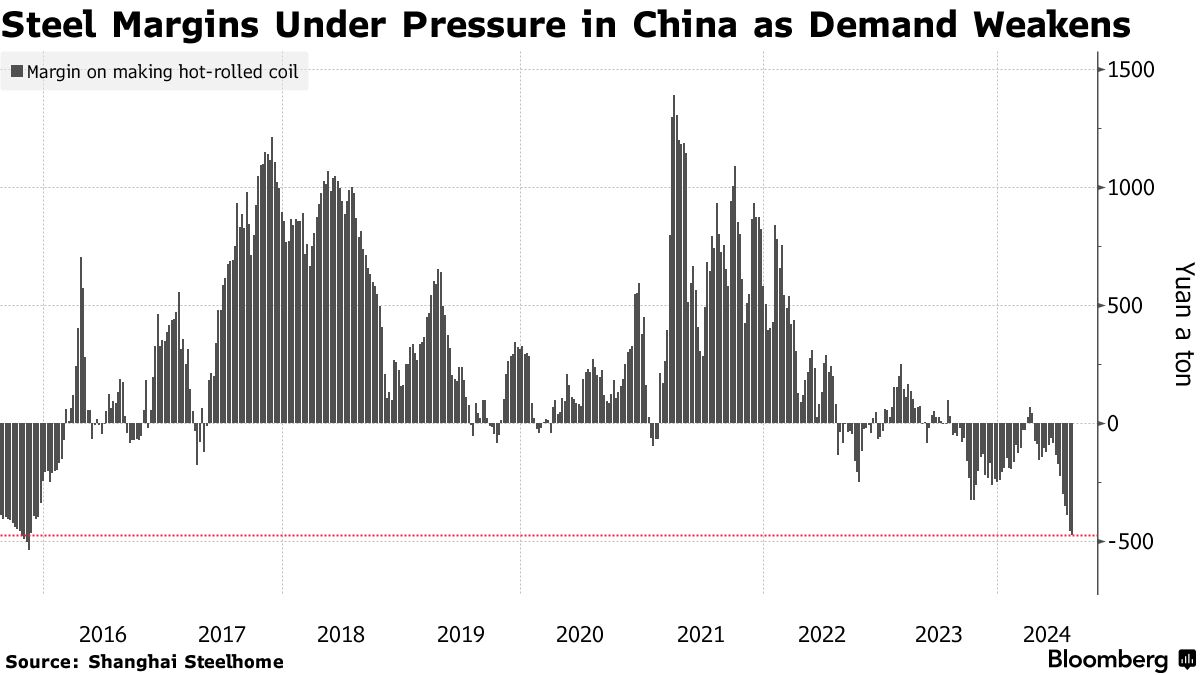 该国的钢铁行业在2008-2009年的全球金融危机期间遭受了毁灭性的衰退,2015-2016年又一次。在这两种情况下,危机最终通过大规模刺激措施得到解决——而在2024年,随着习近平主席试图重塑经济,这一前景看起来更加遥远。