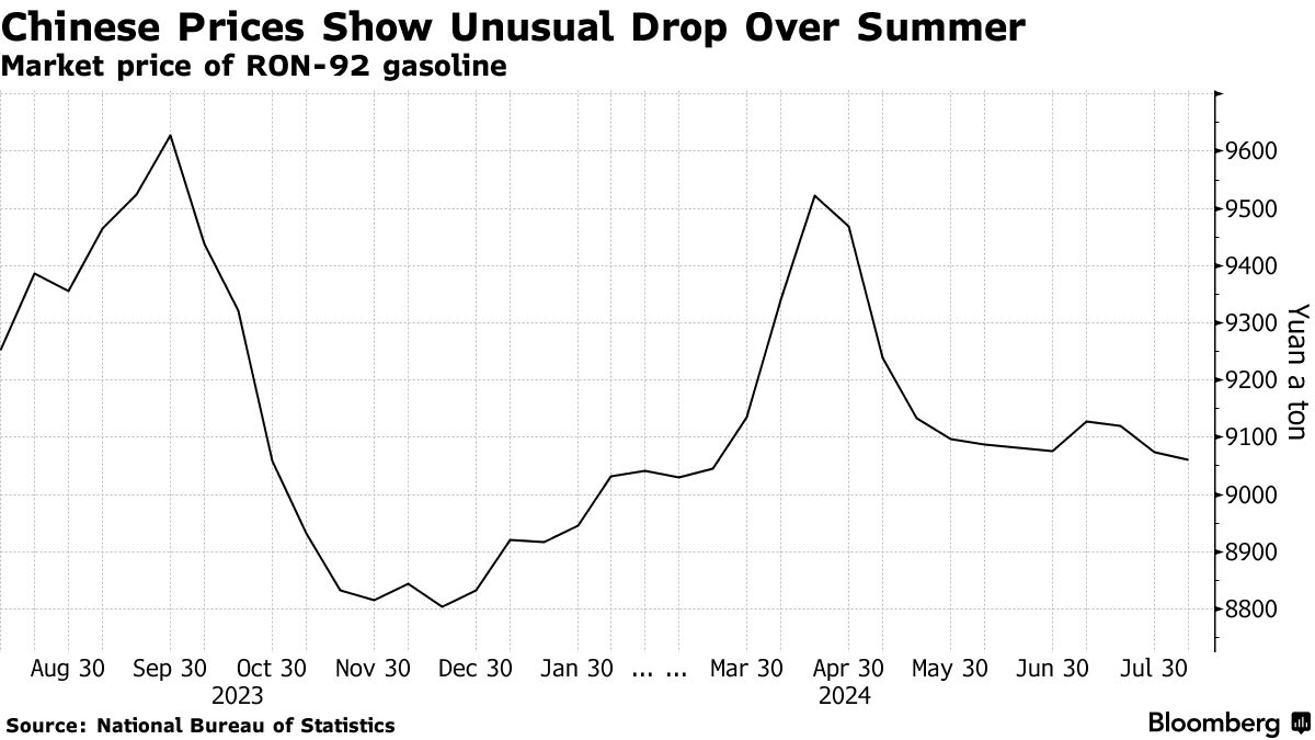 根据知情人士透露,中国两大零售商中石油和中石化的汽油销售自七月初以来下降了超过5%,这些人士要求匿名,因为该信息并未公开。中石化拒绝置评,而中石油则未立即回应置评请求。