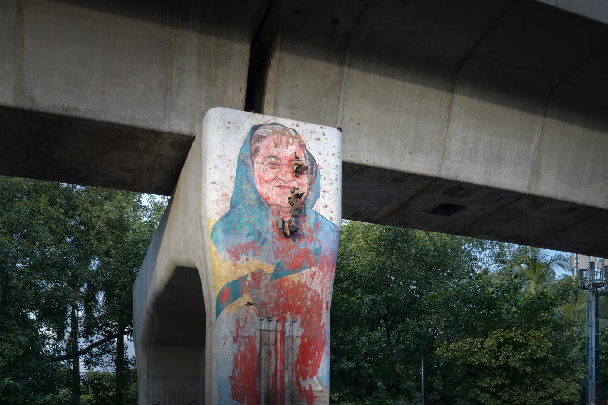 在8月6日达卡抗议活动后,谢赫·哈西娜的涂鸦壁画。