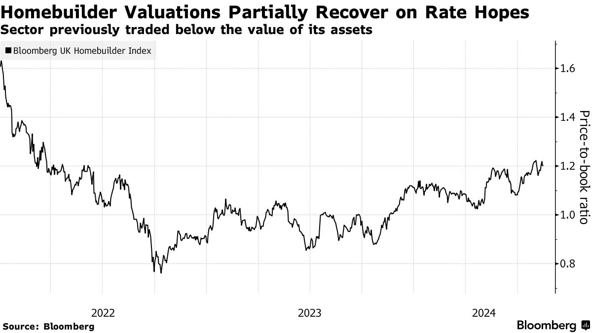 该行业指标已恢复了约一半因2022年抵押贷款利率飙升而造成的损失,当时中央银行试图通过提高借贷成本来抑制通胀。该集团目前的估值为账面价值的1.2倍,而在过去几年中大部分时间都低于账面价值。