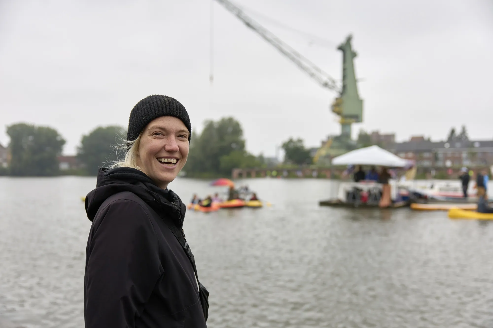 目前,像比利时根特的An Nÿs和她的孩子们这样的运河游泳者正在 保持沉默,在当地水域嬉戏。