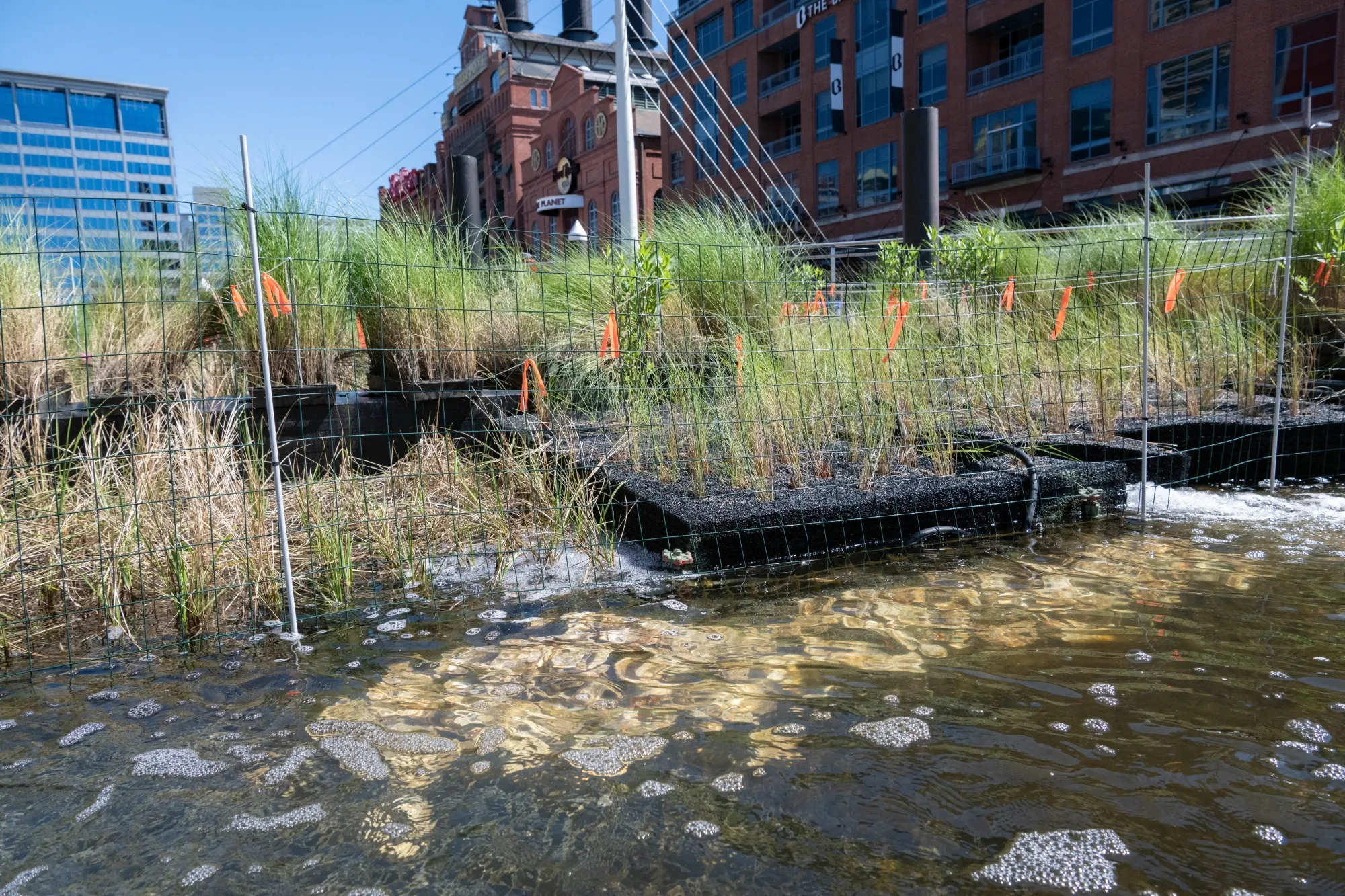 但一个名为港口湿地的新建10,000平方英尺(900平方米)栖息地旨在帮助恢复曾经在内港中繁忙的水生生物——并帮助使其对人类安全可游泳。由巴尔的摩的建筑公司Ayers Saint Gross设计,这一漂浮结构是利用本土灌木和草类的过滤特性清理城市水道的最大和最雄心勃勃的努力之一。