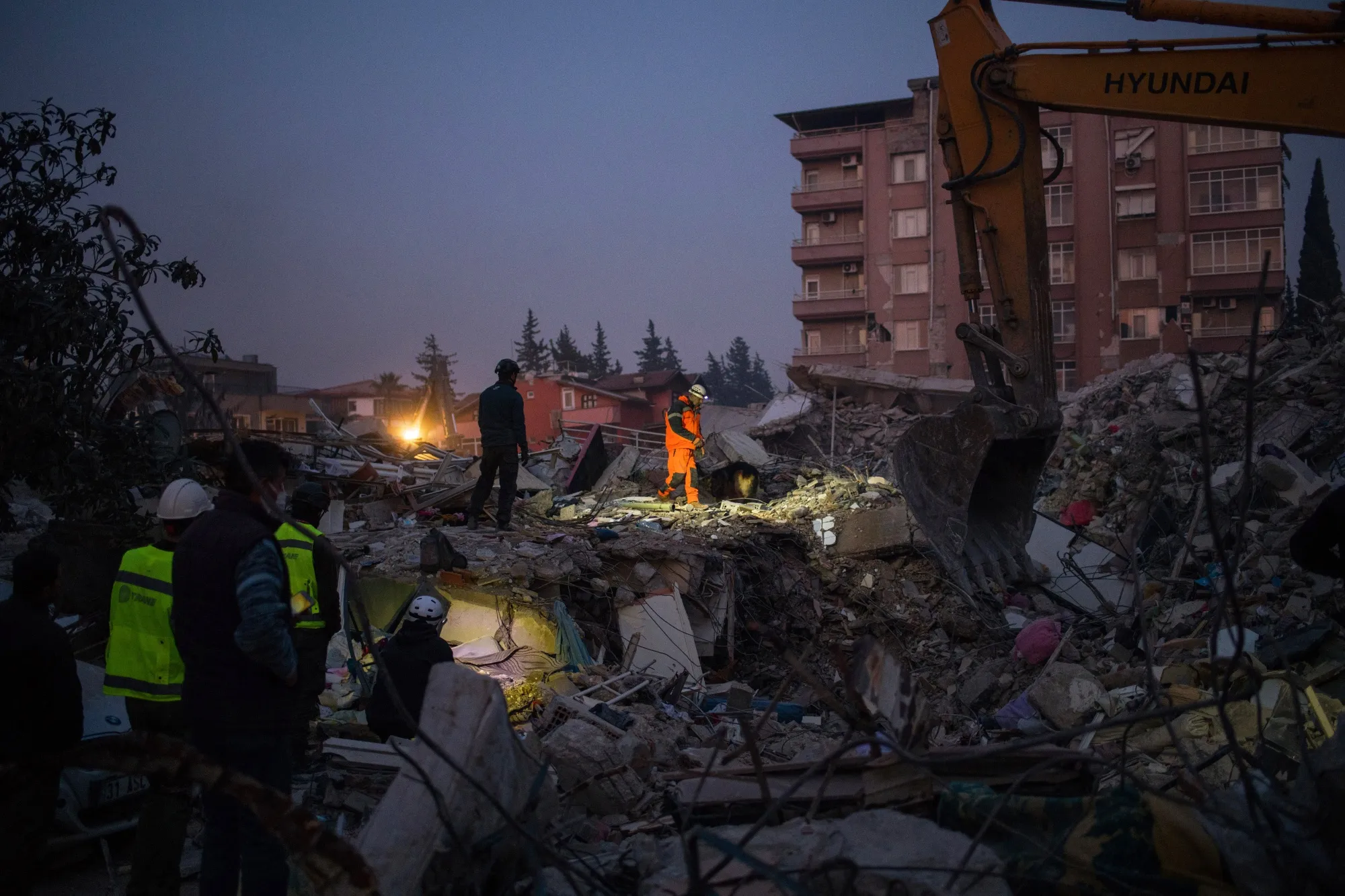在土耳其哈塔伊,夜幕降临时,倒塌建筑现场的救援行动,时间为2023年2月12日。摄影师:内森·莱恩/彭博社根据坎迪利研究所的说法,下一次伊斯坦布尔地震中,约有40,000栋建筑可能遭受“严重损坏”。该研究所表示,伊斯坦布尔所有建筑中约有12%可能会出现重大损失。