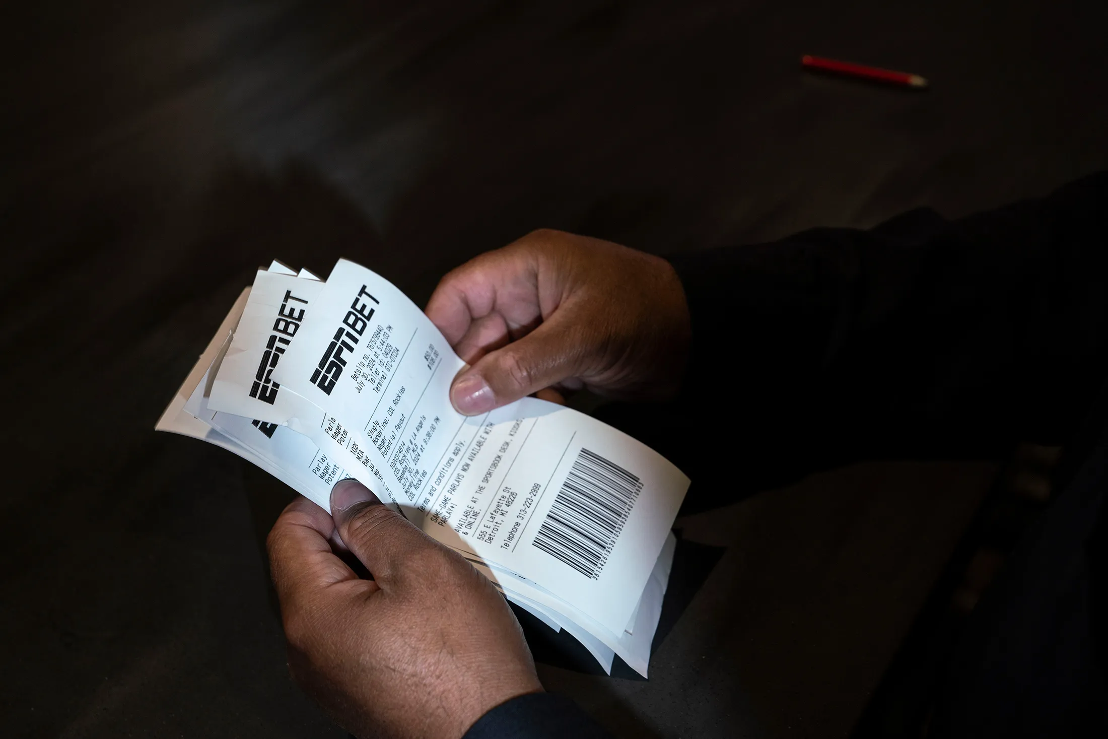 底特律新体育博彩的投注单。摄影师:Sarah Rice,彭博商业周刊在2023年夏季,ESPN公司和赌场运营商Penn Entertainment公司宣布了一项为期10年、价值20亿美元的交易。Penn与媒体公司Barstool Sports公司合作,随后转向自称为“全球体育领导者”的ESPN。在与分析师的电话会议上,Penn首席执行官杰伊·斯诺登表示:“我们认为我们将成为一个主要参与者。”他将体育博彩战斗已经被Flutter Entertainment Plc的FanDuel和DraftKings Inc.赢得的想法称为“疯狂的说法”。他表示,作为该项目的ESPN Bet“将对整体市场份额产生影响。”