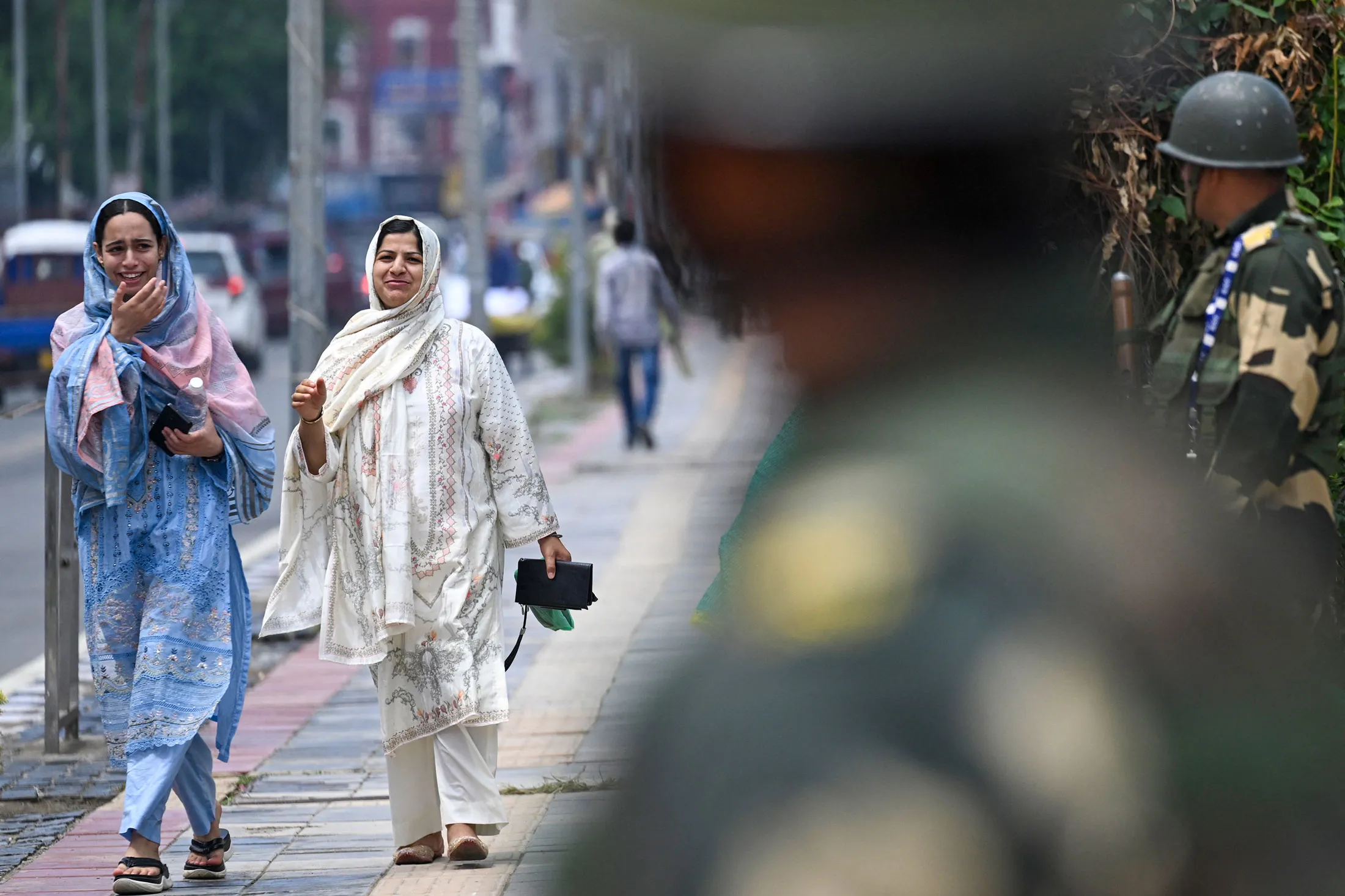 2023年8月16日,印度查谟和克什米尔的斯利那加,印度安全部队。摄影师:陶西夫·穆斯塔法/法新社/盖蒂图片社总理纳伦德拉·莫迪及其印度教民族主义政府在2019年重新上任时兑现了长期以来的竞选承诺,取消查谟和克什米尔的特殊宪法地位。当时,当地政治领导人被软禁,实施了通讯封锁,并在整个山谷部署了数万名军队。