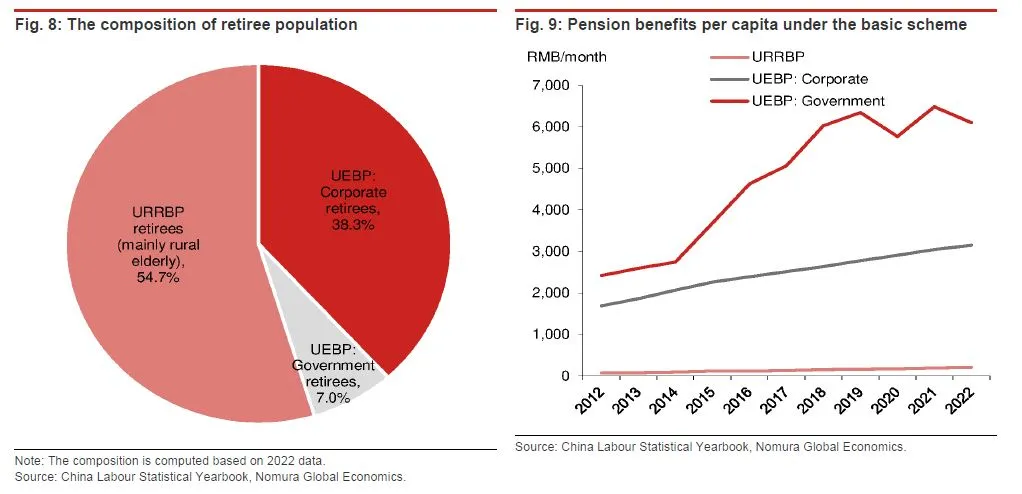 - 企业员工占退休人员的38.3%,退休后收入减少约一半