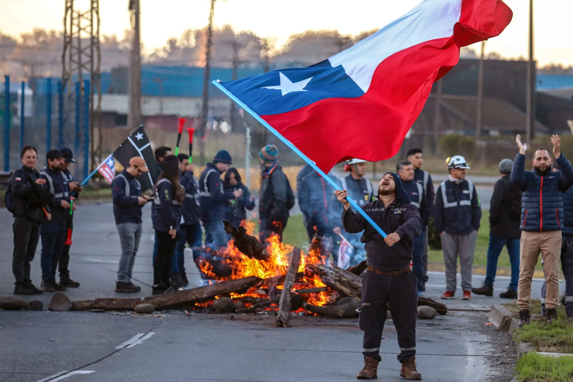智利钢铁公司Huachipato的工人在塔尔卡瓦诺抗议工厂关闭,时间是4月1日。摄影师:费利佩·瓦斯奎兹/EPA-EFE/Shutterstock“关闭是可耻的,完全是由于来自中国的不公平竞争,”梅迪纳说。“我们都将失去收入来源。”