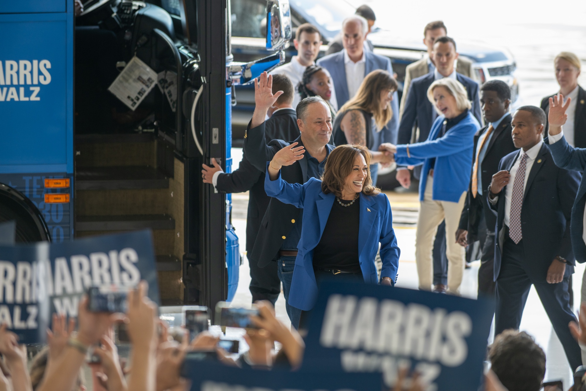 副总统卡马拉·哈里斯和道格·埃莫夫在周日于匹兹堡启动他们的西宾夕法尼亚州巴士之旅。
