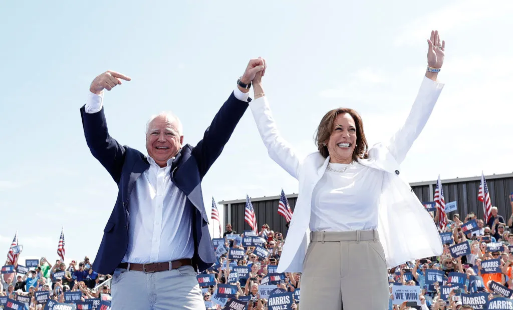 哈里斯和她的竞选搭档蒂姆·沃尔兹于8月7日在威斯康星州欧克莱尔。摄影师:卡米尔·克扎钦斯基/法新社/盖蒂图片社### 全球必读