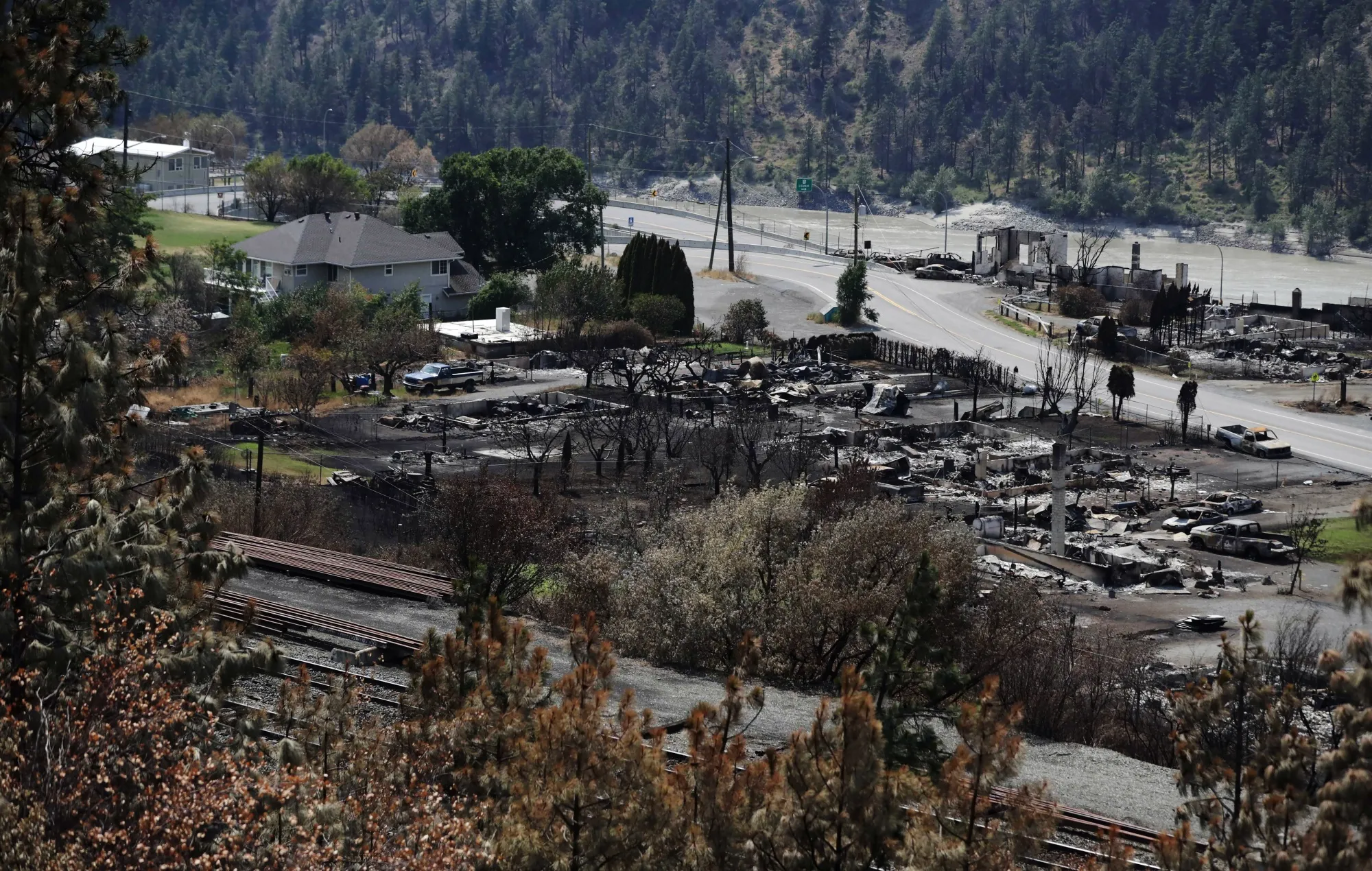 2021年,加拿大不列颠哥伦比亚省利顿镇在野火后看到的受损建筑。摄影师:达里尔·迪克/加拿大新闻社/AP照片该分析在现实事件中得到了验证。在一份期刊接受他的论文四周后,北美西部经历了一场异常热浪,正是他预测的规模。一个不列颠哥伦比亚省的村庄连续三天打破了加拿大84年来的45摄氏度(113华氏度)热记录,达到了49.6摄氏度(121.3华氏度)。第二天,一场野火摧毁了该镇的大部分地区,造成两人死亡。后来,一组科学家宣称这是有史以来记录的六个最强烈的热浪之一。