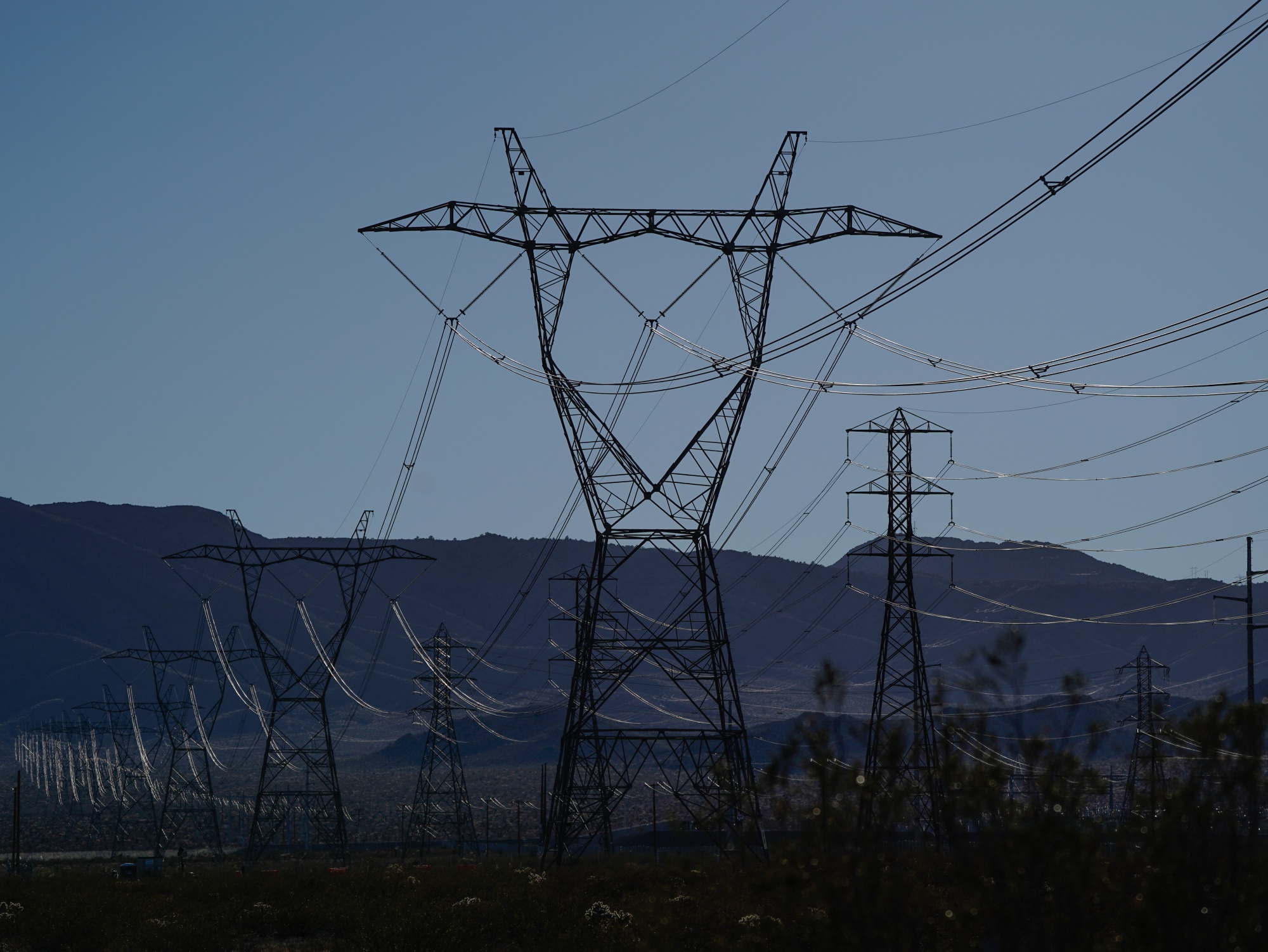 加利福尼亚莫哈维沙漠中的输电塔。美国能源部估计本十年峰值消费可能增加多达200吉瓦。