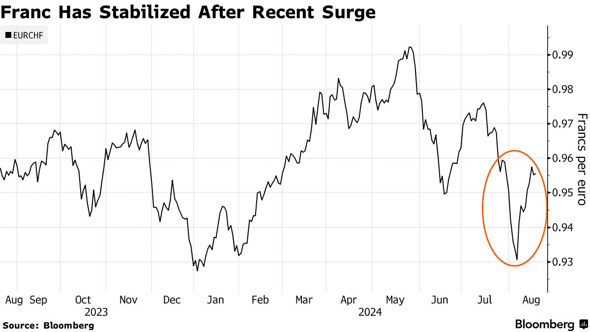 法郎最近已经稳定,之前因对美国潜在衰退和日本动荡的担忧而飙升。