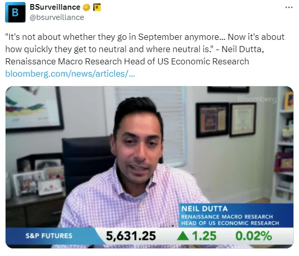 “有一种风险是越来越担心美联储可能在这里有些滞后,”Dutta说。“经济中可能存在比市场目前所意识到的更多的下行风险。”