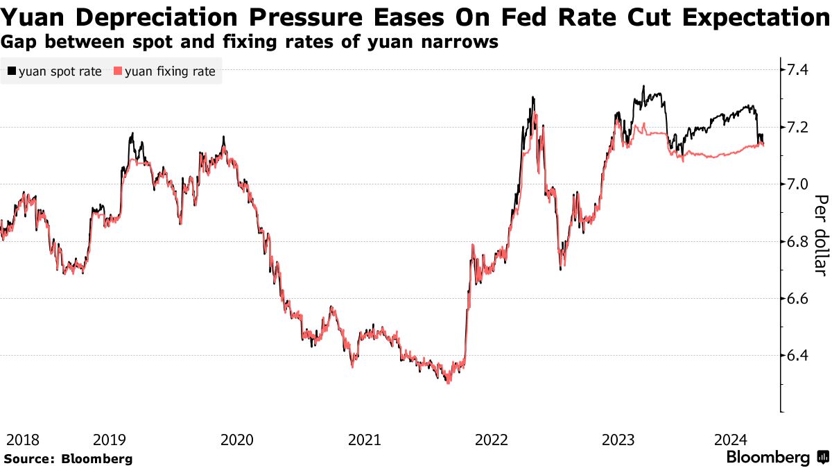 最新一轮的升值为中国人民银行提供了一个欢迎的喘息,结束了其为期一年的捍卫人民币的斗争。政策制定者现在可能有更多空间来降低利率并支持国内经济。