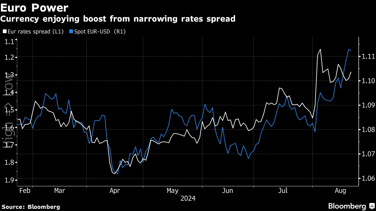外汇交易员对欧元走强的信心正在增强,背景是与欧洲中央银行相比,美联储的利率削减速度更快。本周的杰克逊霍尔会议看起来像是一系列降息的发令枪,直到官方利率接近中性。